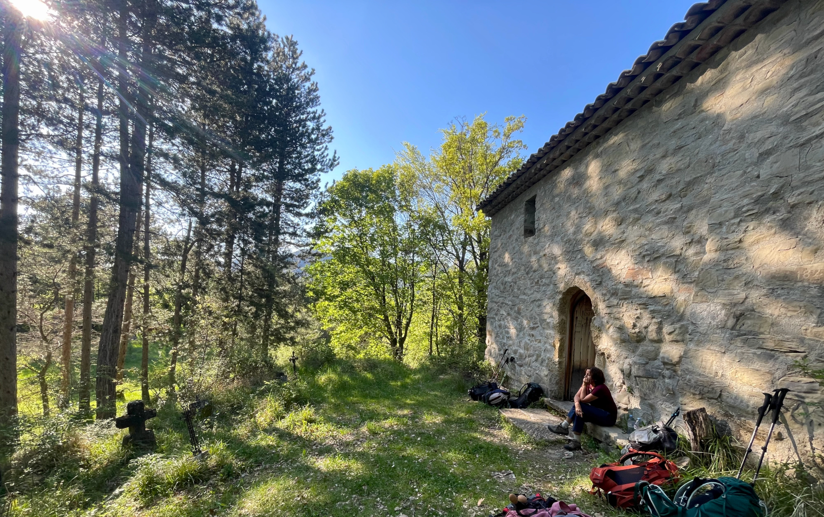 Imagine… an old abandoned hamlet in the forest, above the Gorges du Vançon. An easy walk in the forest and a few minutes later, some ruins in the undergrowth attest to an ancient human presence. We arrived at our destination at the Refuge d’art de la Forest for one night.
